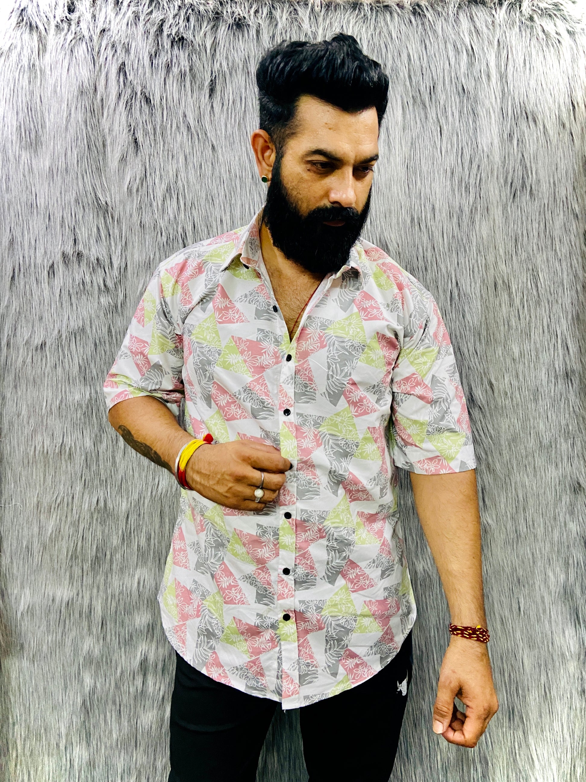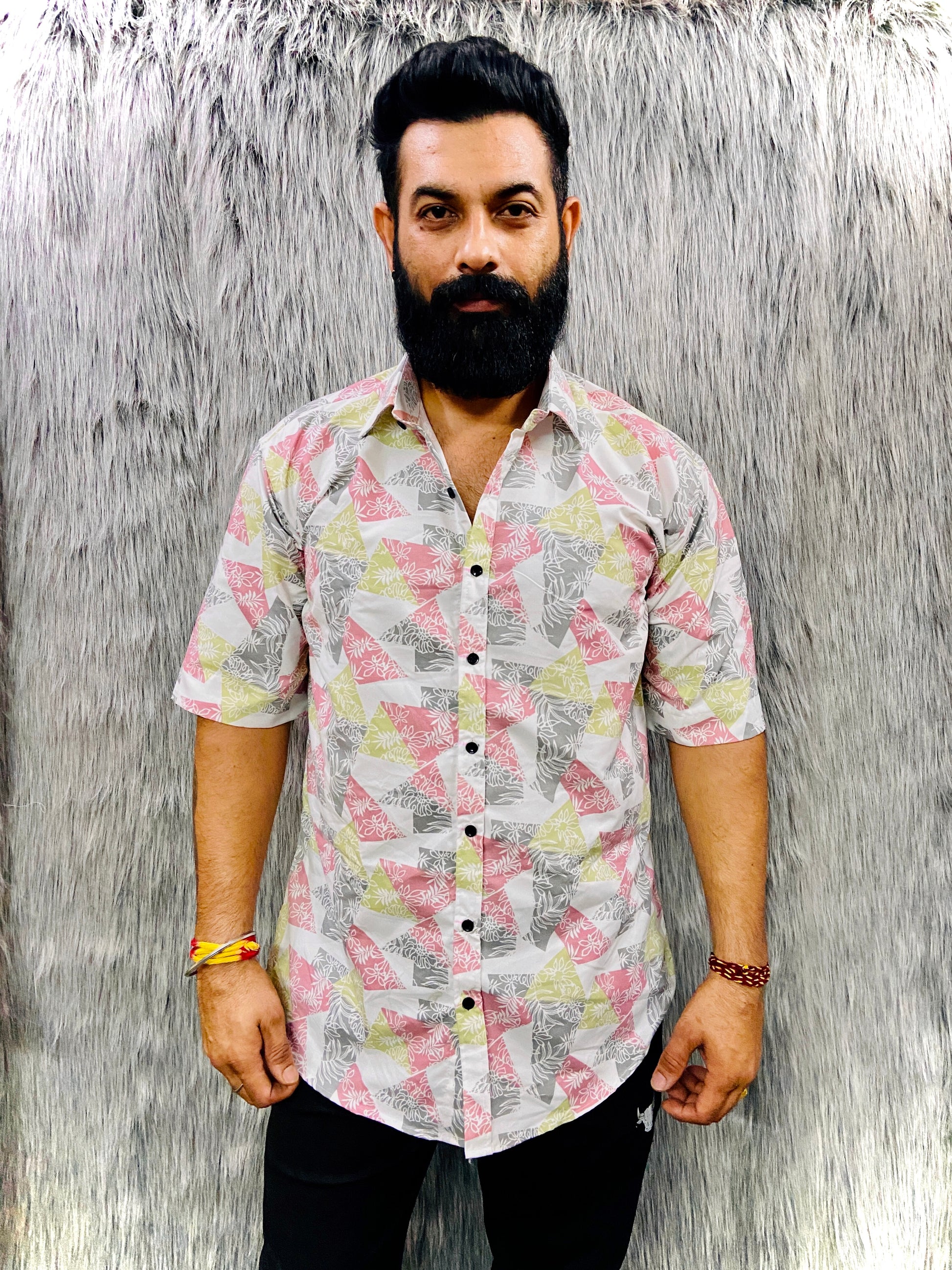 Meet your new wardrobe workhorse. Our Triangle Print half-Sleeve Shirt is designed for the modern man who values both style and comfort. Crafted from premium [fabric type], it's lightweight, breathable, and effortlessly cool. Dress it up or down – this shirt is your go-to for everything from weekend errands to casual Fridays at the office.